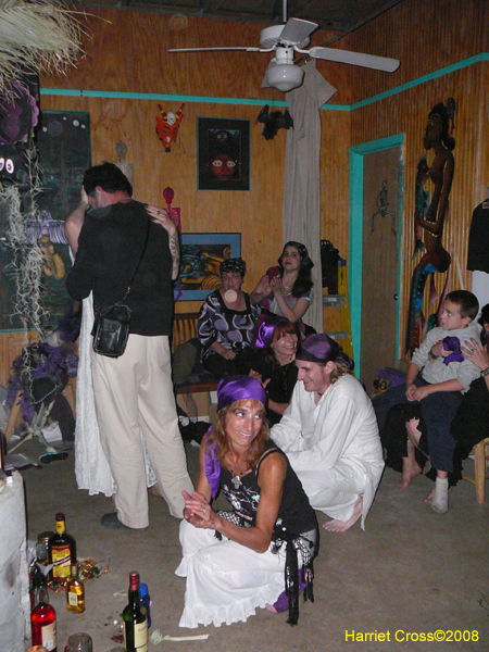 Many awaited the grand appearance of Papa Guédé, who in fact did arrive dressed to the nines. His appearance this November warm night was foreshadowed by a great gust of the north wind and a deathly cold chill in the air. Those who were outside the Perystle felt his approach as the drumming reached a fever pitch inside and many of the dancers slowed from the heat filling the room. That’s when Guédé appeared and wanted to hear another song, have another drink, and eat another meal! The party for the dead really began. With top hat, dark sunglasses with one eye out, to symbolize his power in the world of the seen and the unseen. And with a large thick dark cigar he found with his offerings and with a smile all knew he was very pleased.